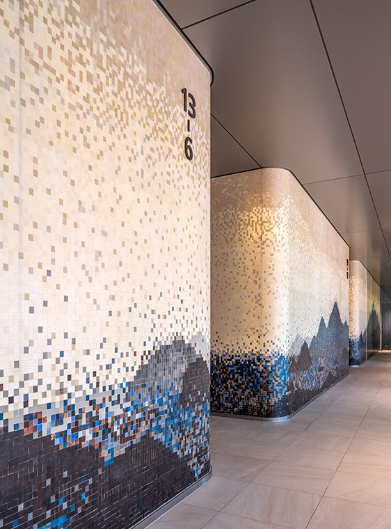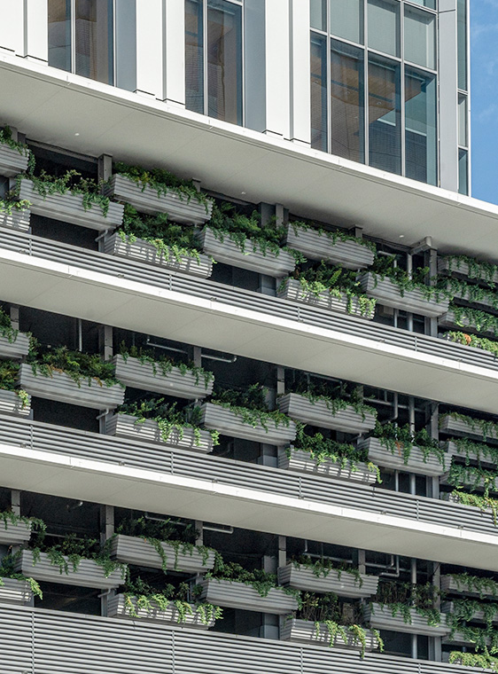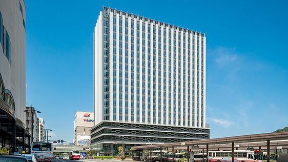 広島の「陸の玄関口」である広島駅南口広場と一体的な景観を目指し、基本計画の段階から関係者と協議を重ねた上で駅前広場側をセットバックさせて都市に開かれた公開空地を整備し、駅前都市空間のオアシスとなることを目指して計画しました。
