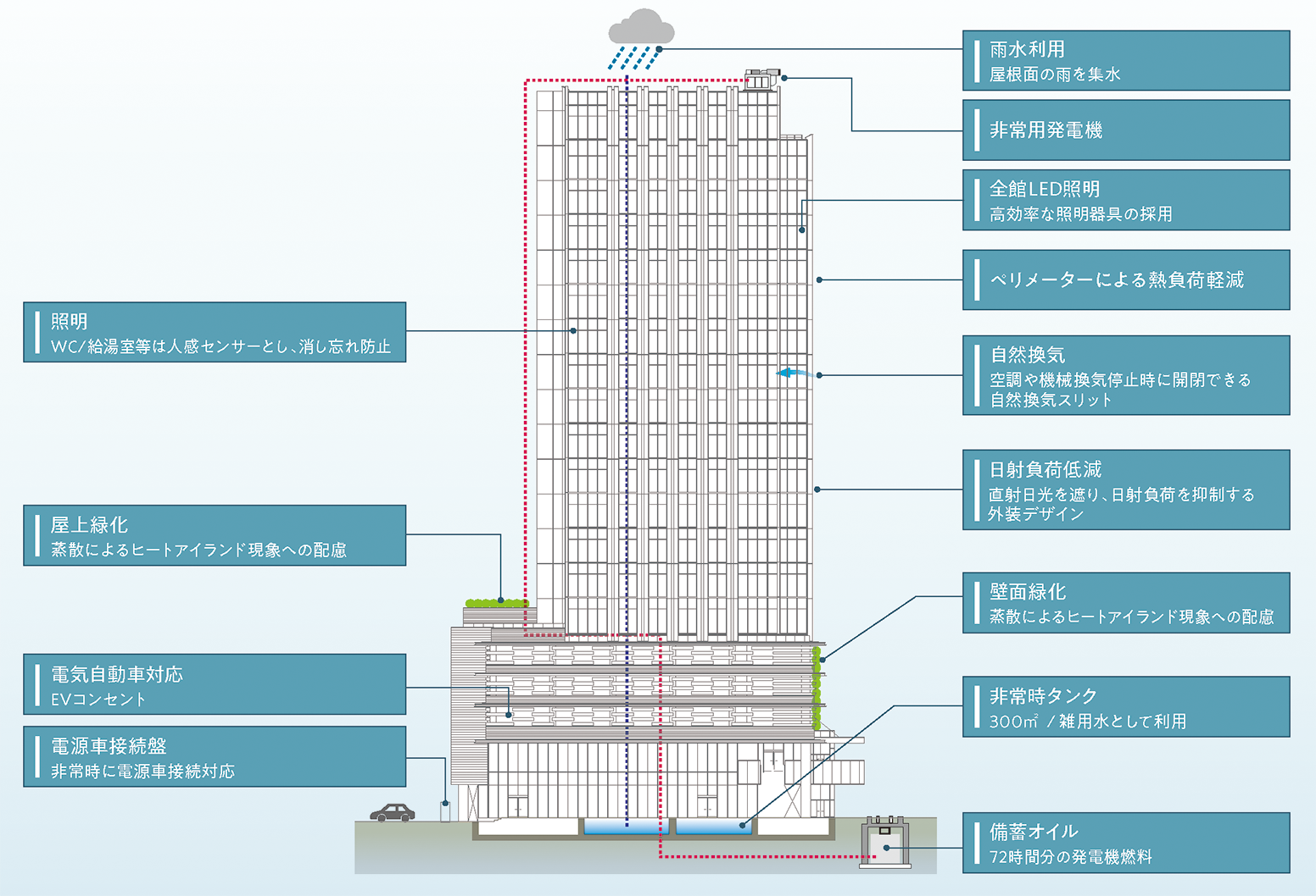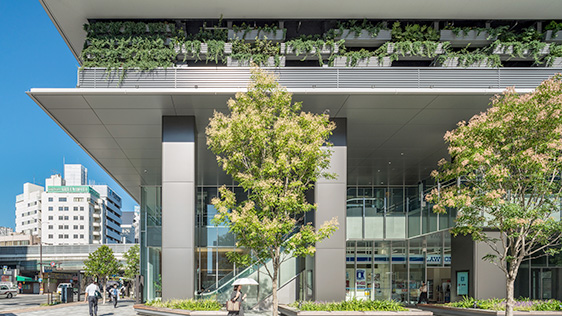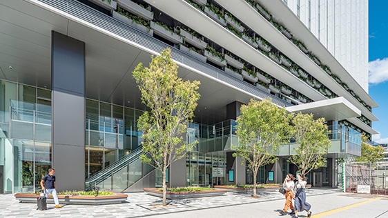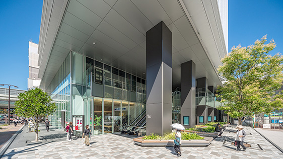 2階レベルでは駅ビル開業時に接続されたペデストリアンデッキからオフィスエントランスへ直結し、雨天等の際も快適でスムーズなアクセスが可能となっています。